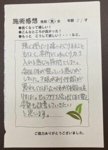 要所にゆっくり力を入れる感じの施術でした。